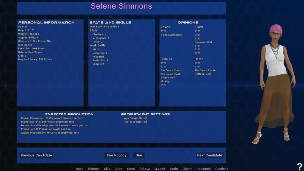 | Ruthless Mogul | Prioritizing obedience, submission, and addiction serums. Using dialogue for intimidation and control. Investing in security and premium services first. | Maximum short-term profits and absolute command over your employees. Unlocks darker, domination-focused story paths. |