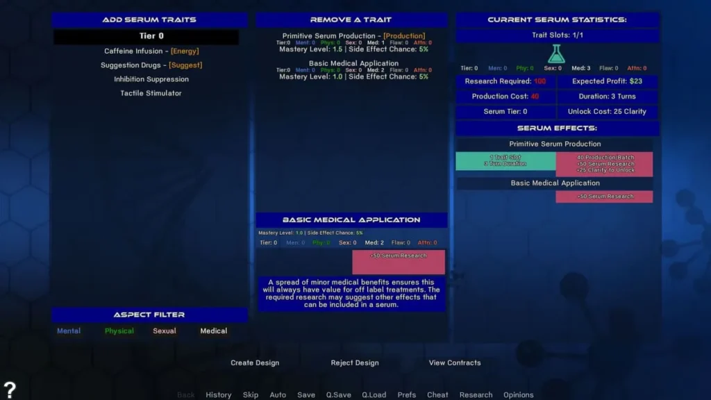 * Craft & Apply: Back in the lab, you use those resources to develop and improve your serums, then choose who to test them on.